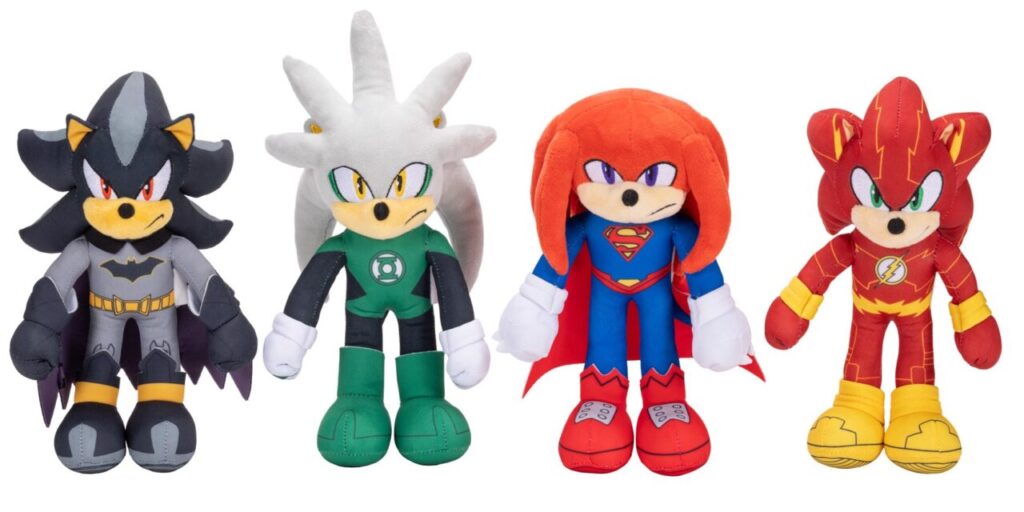 • Collaboration DC × Sonic the Hedgehog : plushs 9″ mettant en scène les héros Sonic transformés en Batman, Flash, Green Lantern, etc., à 9,99 $ l’unité.