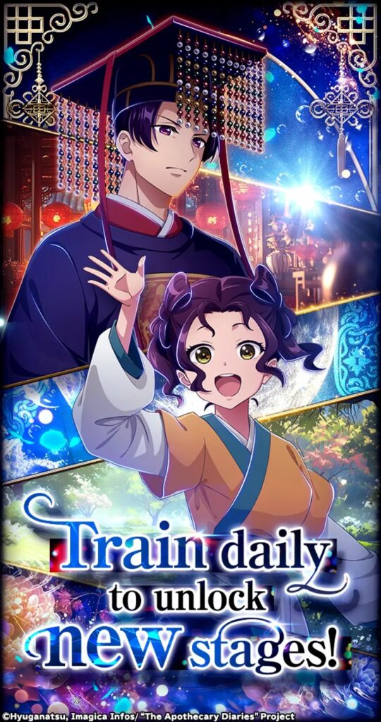 Le concept ? Un jeu de type simulation dans lequel le joueur incarne Maomao, la protagoniste, et doit la faire grandir tout en la faisant évoluer dans le monde de la cour impériale. L’accent est mis sur la résolution de cas mystérieux dans le palais et dans le quartier des plaisirs, tout en développant des liens avec des personnages clés comme Jinshi ou Consort Gyokuyō. Plus de 35 personnages tirés de l’univers de la série seront intégrés, avec des illustrations inédites