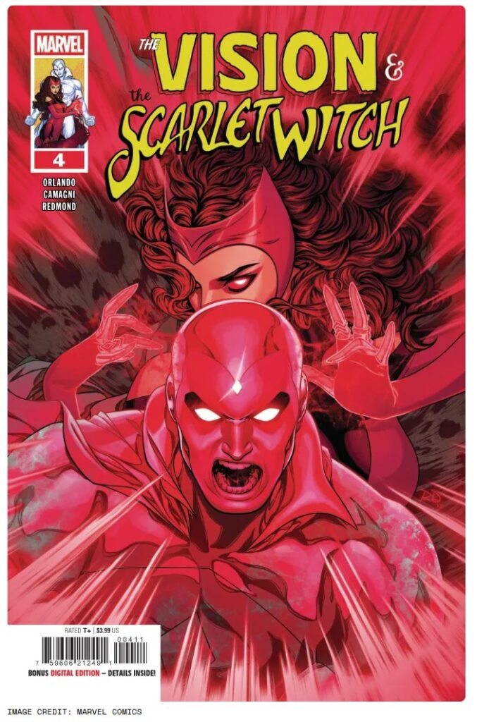 The Vision & The Scarlet Witch #4 sortira le mercredi 20 août 2025 aux US. Préparez-vous à un mélange de magie, de tension et de tentation démoniaque.