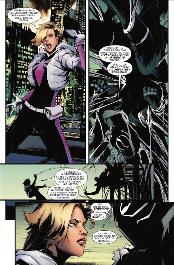 Évidemment, Marvel ne pouvait pas laisser Gwen profiter d’un peu de calme : une nouvelle menace se profile déjà à l’horizon. Et spoiler : elle pourrait bien être de sa propre faute (on applaudit la constance).
