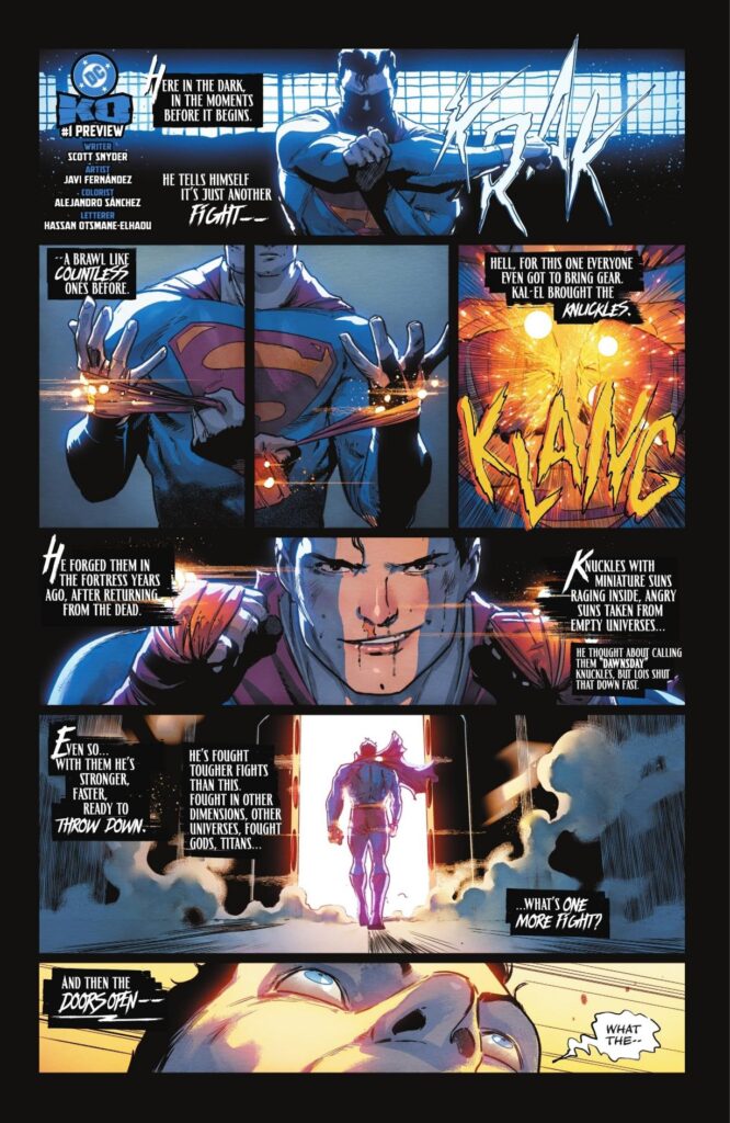 Les premières planches de DC K.O. #1 sont déjà visibles en preview (et cette fois sans watermark douteux pompé par un site en mal de clics). Préparez-vous : la sortie est prévue pour le 8 octobre 2025 dans les comicshops US. Sortez le pop-corn, ça promet plus de coups de poing que de finesse scénaristique.