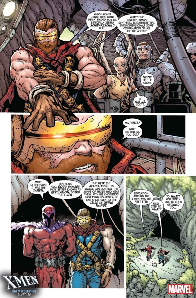 Sauf que le comics ne s’intéresse pas vraiment au « comment », mais directement aux conséquences : dix ans plus tard, les Revelation Territories s’étendent de l’Atlantique au Mississippi, et notre cher Ramsey, rebaptisé « Revelation », trône à la tête de sa pseudo-utopie mutante. Derrière la façade zen ? Une bonne vieille révolte, évidemment. Les anciens X-Men sortent de l’ombre, certains le rejoignent, d’autres complotent. Bref, la routine mutante.