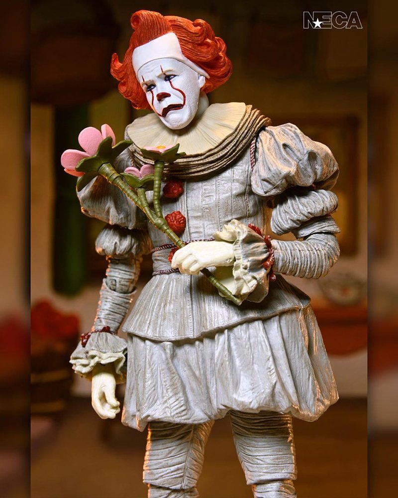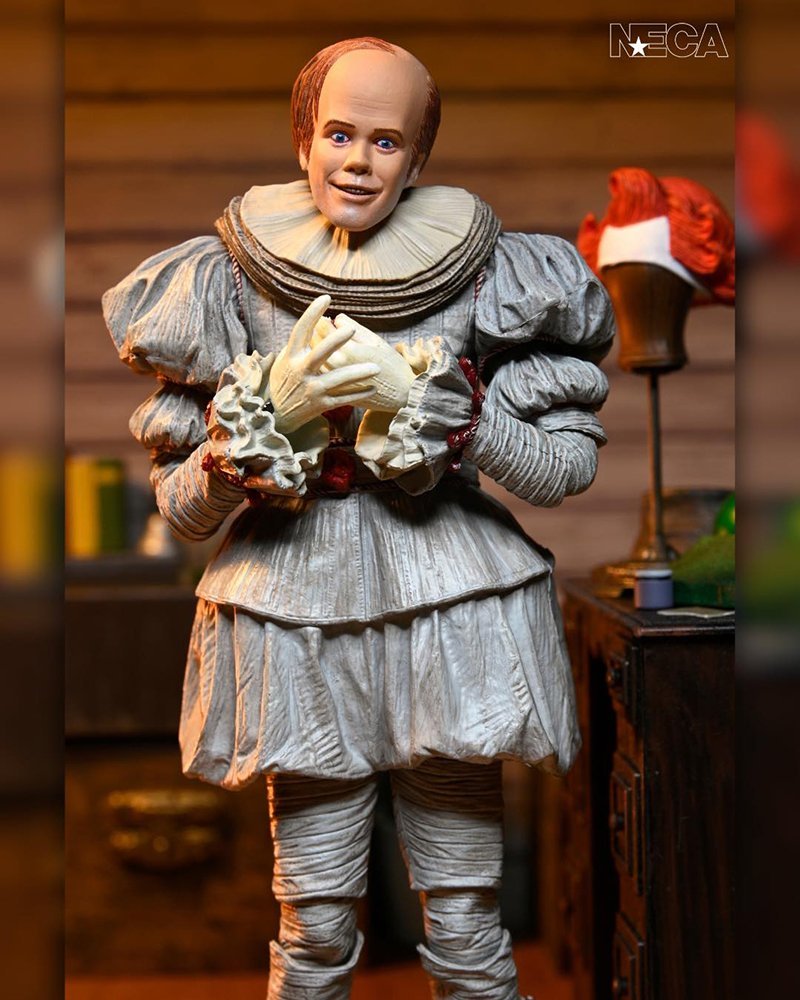 - Bob Gray as Pennywise Ultimate 7″ : trois visages interchangeables, une perruque avec présentoir (oui, sérieusement), une statue de castor en bois et des fleurs, au cas où ton clown meurtrier aurait envie de redécorer son repaire.