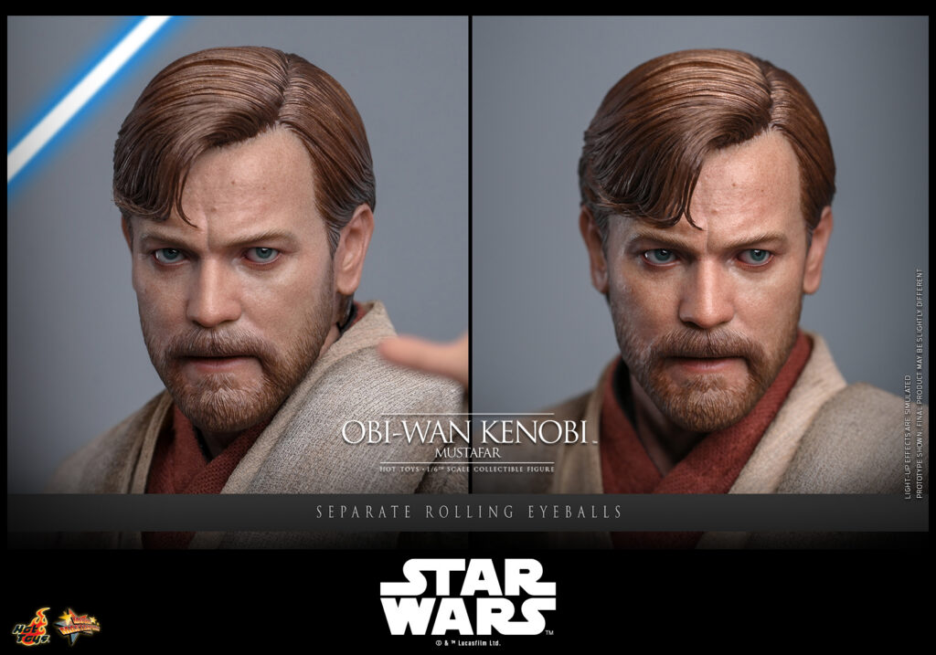 Hot Toys, fidèle à sa réputation de chirurgien plastique du jouet de luxe, nous livre un Obi-Wan Kenobi Mustafar ultra-détaillé, inspiré du visage fatigué (mais toujours photogénique) d’Ewan McGregor.