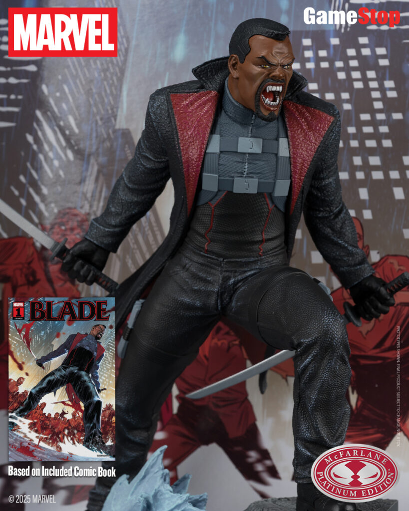 Basée sur Blade #1, cette statue 1/6 Red Platinum Edition arrive chez Gamestop (logique, là où tout fan de Marvel finit tôt ou tard).