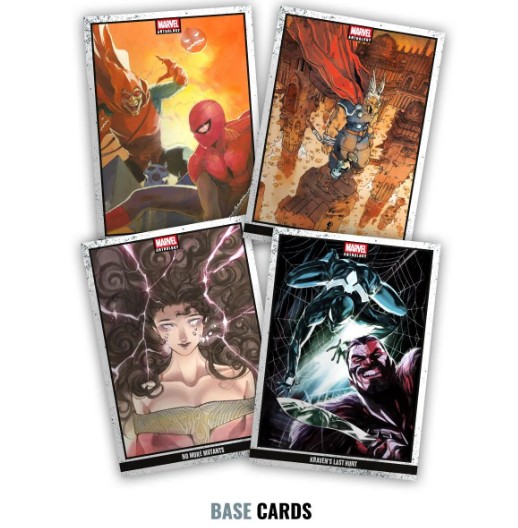 Sous le nom Marvel Anthology, Panini balance une collection de 100 cartes de base, toutes redessinées par la crème de la crème artistique : Peach Momoko, David Lafuente, John Romita Jr., Matteo Buffagni, et même Mathieu Bablet (oui, un Français dans le multivers Marvel, cocorico !).