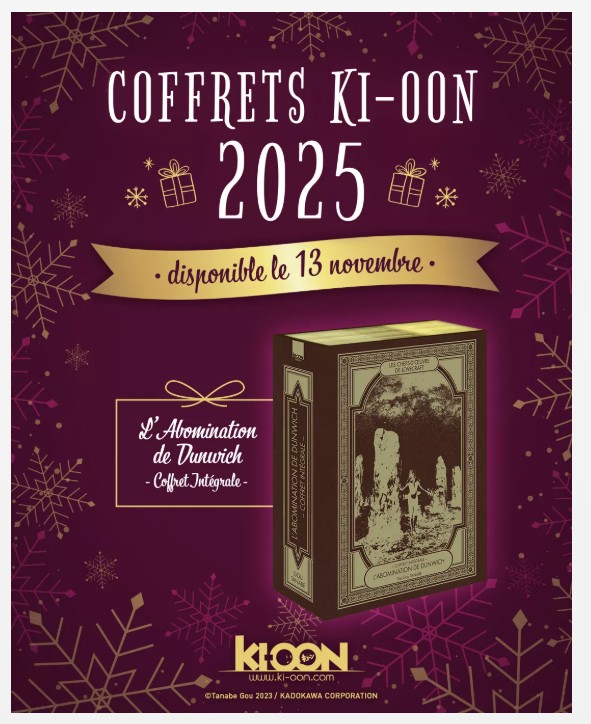 Puis le 13 novembre, Ki-oon vous propose un joli coffret regroupant L’Abomination de Dunwich en intégralité. Parce qu’offrir du Lovecraft revisité en manga, c’est toujours classe surtout quand ça coûte 54 €, soit pile le prix… des tomes séparés.