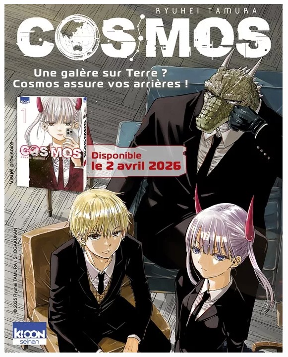 Parce que Ki-oon aime clairement récupérer tout ce qui ressemble de près ou de loin à un futur succès, l’éditeur publiera le tome 1 de COSMOS le 2 avril 2026, au prix hautement assuré de 7,95 €.
