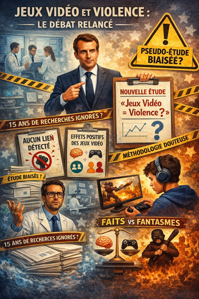 Récemment, Macron a annoncé son intention de lancer une grande étude scientifique sur l’impact des jeux vidéo violents sur l’agressivité des jeunes. Cette annonce a immédiatement relancé dans l’espace public un vieux débat : les jeux vidéo rendent‑ils violents ? Avant toute chose, il est important de rappeler que ce sujet a été étudié pendant plus de 15 ans par des chercheurs du monde entier, avec des résultats très variés souvent plus nuancés que ce que suggèrent les déclarations politiques.