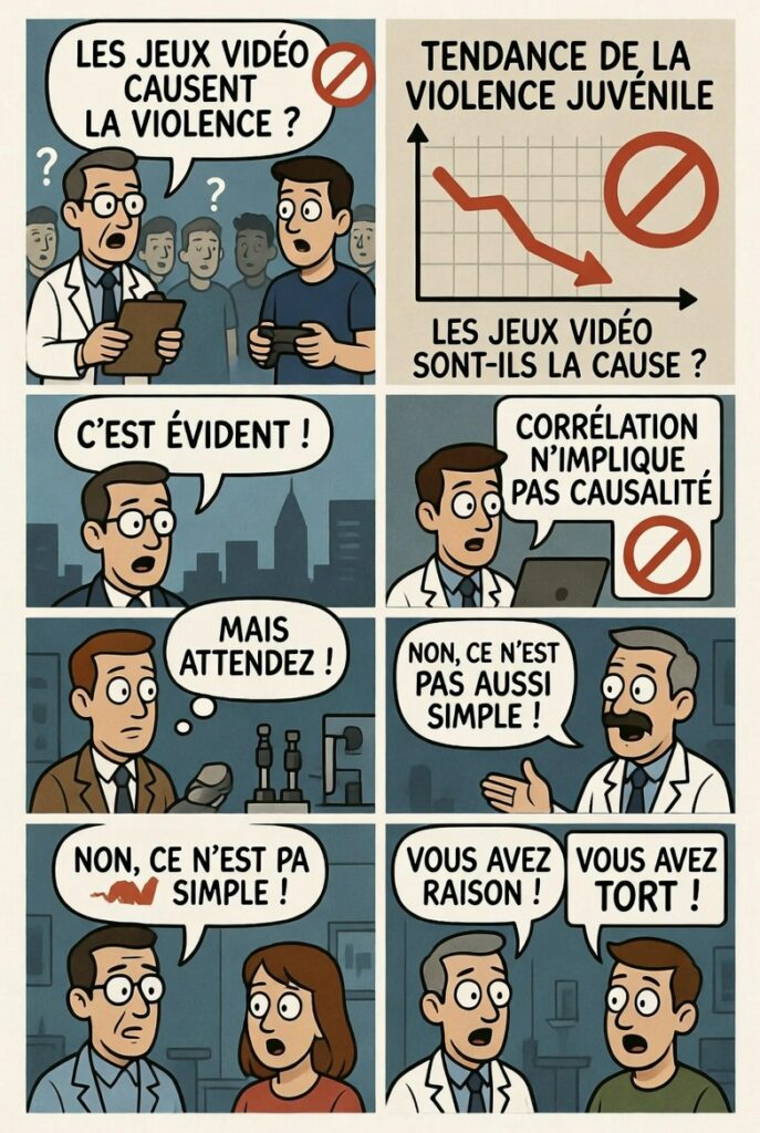 Ces résultats indiquent que les jeux vidéo peuvent être un facteur parmi d’autres, mais pas une cause unique et suffisante pour expliquer la violence réelle.