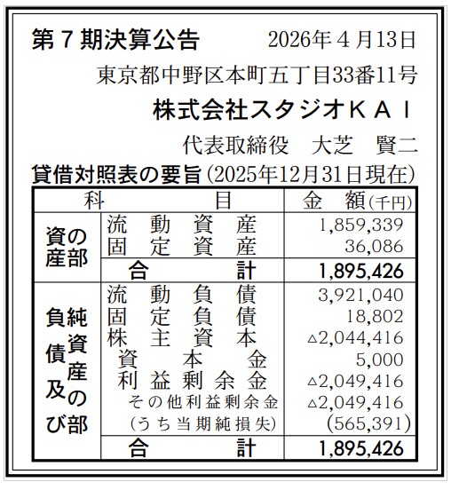 Selon le très glamour journal officiel japonais Kanpo (oui, on est loin des trailers hype), le studio a bouclé 2025 avec une perte nette de 565 millions de yens (environ 3 millions d’euros).